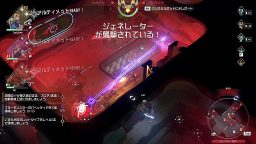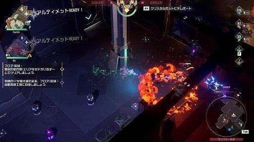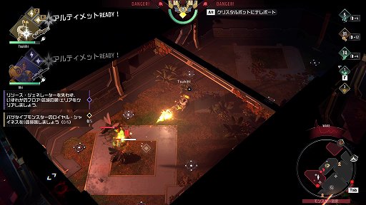 移動や攻撃については,一般的な見下ろし型シューティングと同じだ。今回はPC版なのでキーボード・マウスでの説明になってしまうが,マウスを動かしてエイムし,左クリックで射撃,[W/A/S/D]で移動といった感じだ。コンソール版なら,もちろんゲームパッドでの操作になる。
