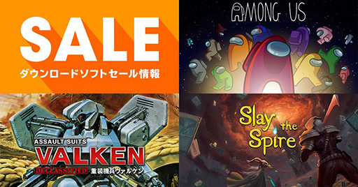 今回更新されたセール情報では,「Among Us」「重装機兵ヴァルケン DECLASSIFIED」「Slay the Spire」などのタイトルが対象となっている。価格とセール期間は以下の通りだ。