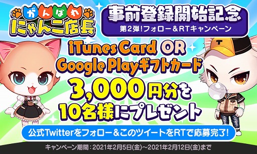 「がんばれ!にゃんこ店長」,3000円分のギフト券が当たるTwitterキャンペーンを開催
