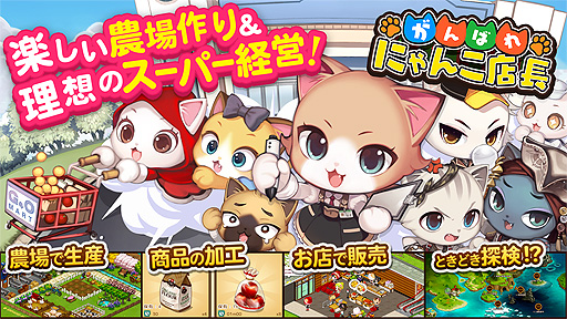 「がんばれ!にゃんこ店長」Android版の配信が本日開始。可愛いにゃんこたちの世界が舞台の農場×スーパー経営ゲーム