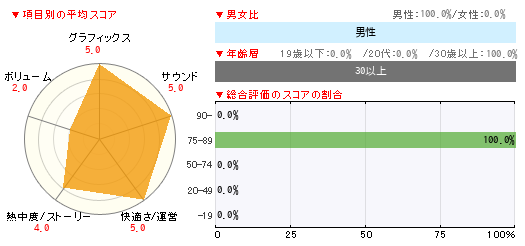 グラフィックス サウンド 快適さ/運営 熱中度/ストーリー ボリューム 5 5 5 4 2