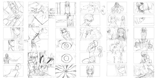 一通りの流れは武内が。シエルルートのヴローヴ戦,死徒ノエル戦,カルヴァリアに関しては佐々木少年さん(漫画家。代表作に「真月譚 月姫」など)に担当してもらって。それにBLACKさんやこやまさんにもアイデアを出してもらい,その上で規定枚数に収める会議をします。みんなでコンテを無慈悲に「ここはカット,ここカット」「ああー」ってやっていく(笑)。