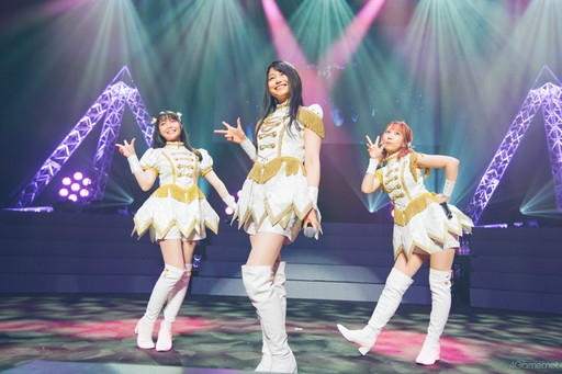 そこからはTRINITYAiLEのMCへ移り,グループを象徴するポージングについてのトークなどが繰り広げられた。2曲目には,ライブ初披露となった「les plumes」が爽やかに歌い上げられた。