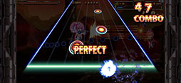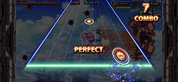 ![]() リズムアクションゲームの成績によって,画面内にいる敵全体にダメージを与えられるうえに,獲得できるスコアもアップする |
