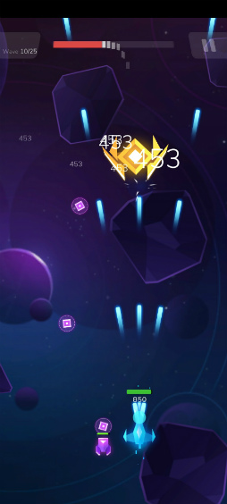 本作は宇宙で敵機を撃ち倒していく,WAVE制の縦スクロールシューティングだ。自機はオートショットで,操作は画面スワイプの移動のみ。残機制ではなくライフ制なので,被弾のプレッシャーもそれほど大きくはない。敵機の攻撃を回避しつつ,こちらのショットを当てていこう。