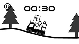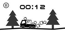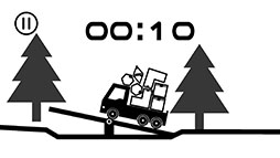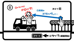 荷物を積み終えたら,いよいよ出発。トラックの走行パートでは,画面の左右を長押しでアクセルとブレーキを操作できる。走行時は勾配などの影響で荷物が落下しないよう注意する必要があるものの,時間をかけすぎるとクリア時の評価が低くなってしまう。