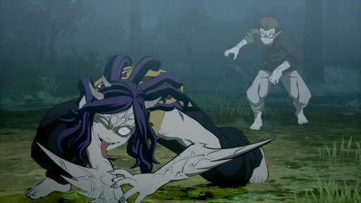 ガードするばかりではジリ貧になっていくので,軌道を避けつつ朱紗丸に接近しなければならないのがスリリング。とはいえ,鬼が技を出す前には攻撃範囲が赤く表示されるため,しっかりと観察していれば,活路は開けるだろう。禰豆子は刀で戦う炭治郎とは対照的に,身体を使った格闘術で戦う。通常攻撃の爪や蹴りから,連続で引っかく「乱れ裂き」,そして空中で一回転する「かかと落とし」と,簡単操作で猛烈な攻撃を繰り出せるのは炭治郎と同じだ。