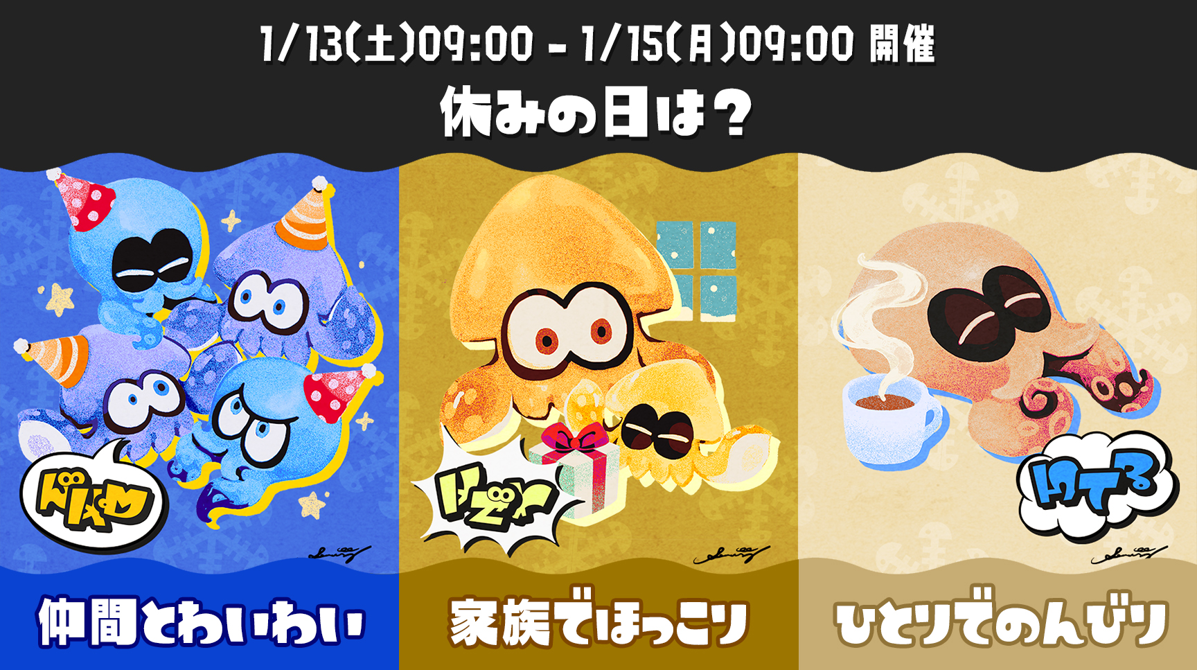 「スプラトゥーン3」,特別なフェス「FrostyFest」を2024年1月13日9:00から開催。お題は休みの日の過ごし方