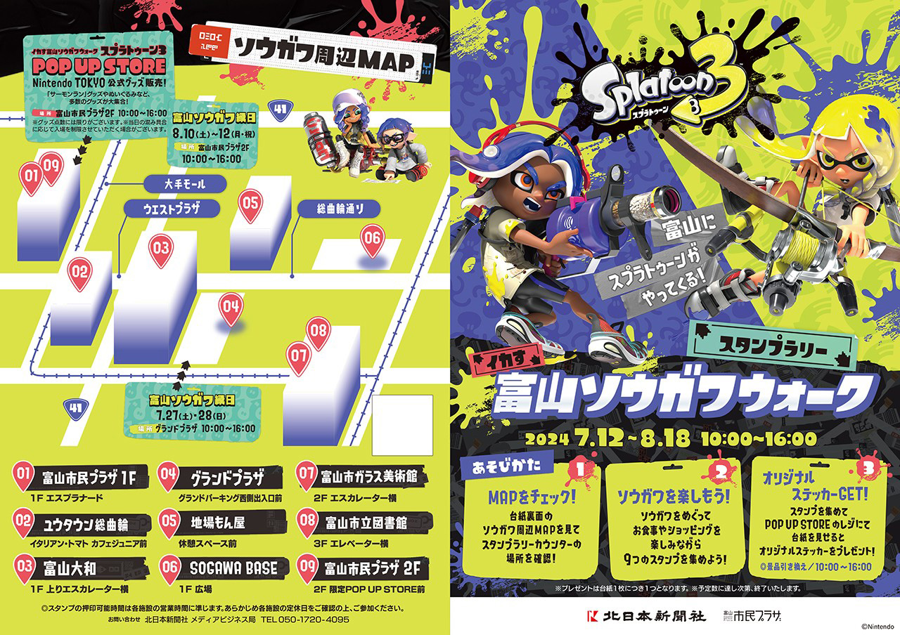 「スプラトゥーン3 イカす富山ソウガワウォーク」7月12日より富山県富山市の総曲輪で開催。縁日やPOP UP STOREなどを予定