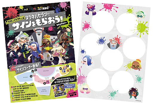 スプラトゥーンに登場する3組のアーティスト「シオカラーズ」 「テンタクルズ」 「すりみ連合」の7人「ヌラネバセブン」のサインを集めるスタンプラリーを開催します。館内7か所に設置されたスポットを巡り、全てのスタンプを集めると、先着順でオリジナルステッカーをお一人様1枚プレゼントいたします。