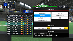 基本的に監督プレイで進行する試合で,何より重要となるのが攻撃時の「積極的にいけ」「長打狙い」や,守備時の「ストライク先行」「打たせて取れ」といった作戦コマンドでの指示。「長打狙い」だと「三振狙い」に強いが「打たせて取れ」に弱い。「ストライク先行」だと「見ていけ」に強いが「積極的にいけ」に弱いといったように,コマンドにはそれぞれ相性があるため,均衡した戦力同士の対戦の場合はとくにそれらの一手が勝敗を分けることになるのだ。