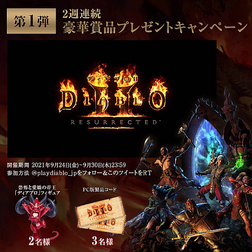 発売を記念したプレゼントキャンペーンがディアブロ公式Twitterで開催されており,「ディアブロ」のフィギュアや,PC版製品コードなどの豪華賞品が用意されている。