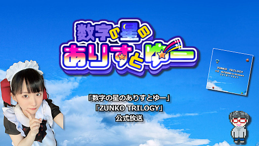 「ZUNKO TRILOGY」が,ゲームの発売と同じ3月6日に開催される東京ゲーム音楽ショーで先行販売される予定だ。「数字の星のありすとゆー」のダウンロードコードを同梱したCDの価格は,3300円となっている。