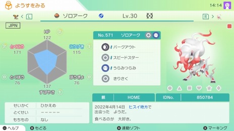 『Pokémon LEGENDS』から『Pokémon HOME』に預けたポケモンは、これまでのポケモン詳細情報に加え、がんばレベルが確認できるようになります。