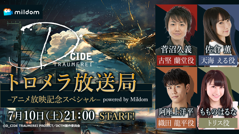 アプリ版「D_CIDE TRAUMEREI」の情報を発表する生放送が7月10日に実施