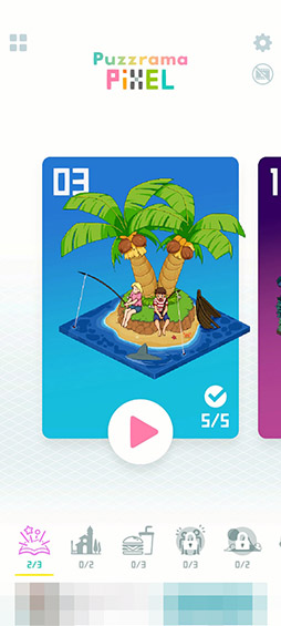 本日の「(ほぼ)日刊スマホゲーム通信」では,カラフルなボクセルグラフィックスが楽し気な,スマホ向けパズルゲーム「Puzzrama (パズラマ)」を紹介しよう。さまざまなテーマに沿った平面パズルを解くと,立体化されてジオラマ風に配置される。このときの快感を味わってほしい。
