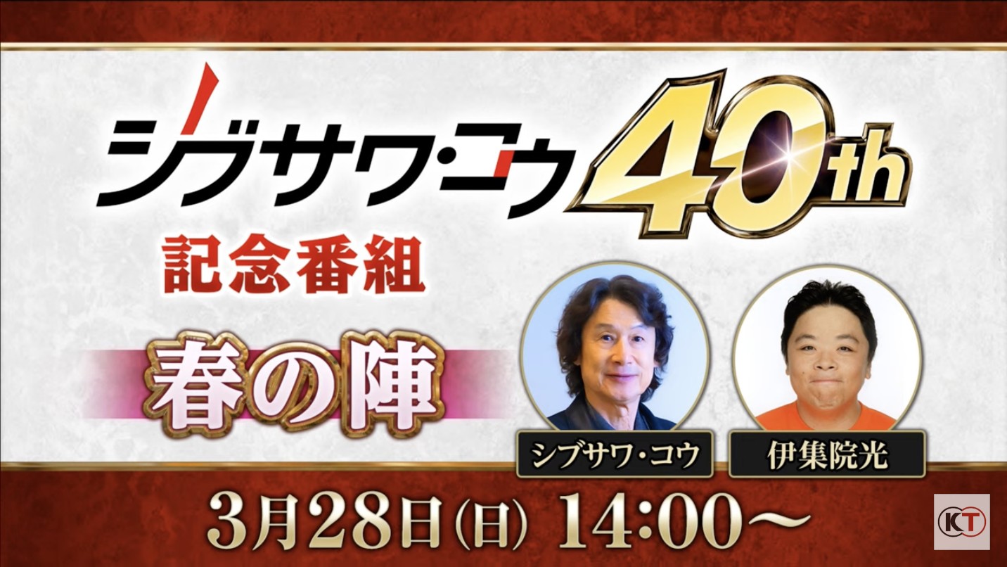 「シブサワ・コウ40周年記念番組 春の陣」レポート。伊集院 光さんをゲストに迎え,「川中島の合戦」から「仁王」までのシブサワ・コウブランドを振り返る