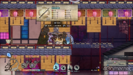 月風魔に続く第2のプレイヤーキャラとなる月蓮華(げつ れんげ)は,くのいちということもあり,雄々しい武者のような月風魔と比べると,素早い忍者のような動きが特徴的だ。キャラクターの強化要素「鍛錬」は月風魔と月蓮華で別になっているが,もう一つの強化要素「秘伝」は月風魔と月蓮華で共通となっている。