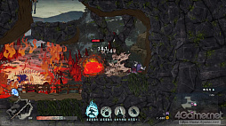 そんな「業火の断崖」と比べると,「荒波の大洞」では,まず炎上や毒といった継続ダメージを受ける心配がないということが大きい。油断ならない魍魎はいるが,攻撃パターンの掴みやすさで言えば輪入道を相手にするよりは苦労は少ない。また,ゴール地点が必ずマップ右端になるので,「とにかく右へ進み,進めなくなったら上へ行ける場所を探す」の繰り返しでゴールに辿り着きやすいというのもある。