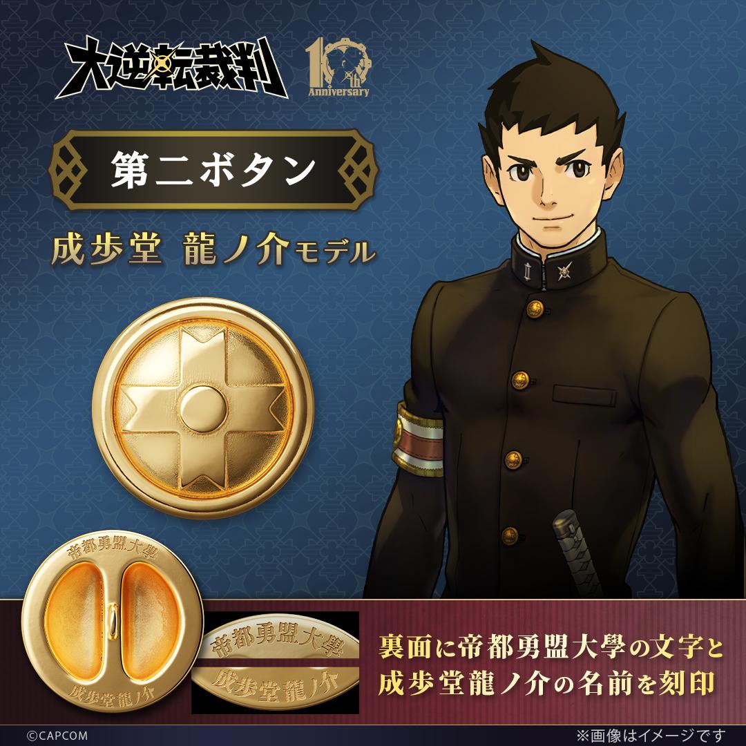 成歩堂龍ノ介と亜双義一真の学生服のボタンを再現。「大逆転裁判」シリーズ10周年を記念した「第二ボタン」の予約受付を開始