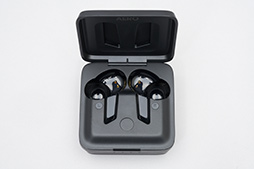 イヤフォン内蔵のスピーカードライバーは,6mm径のチタンコートドライバーを採用しており,価格帯からすると高級な部材を使用していると言えよう。スペックを見ていくと,イヤフォン部分の周波数特性は20Hz〜20kHzで,感度は103dB,インピーダンス16Ωとなっていた。完全ワイヤレスイヤフォンとしては,充実している方だろう。それに加えて,イヤフォン本体はIP54準拠の防滴仕様だ。