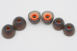 付属のイヤーピースは2種類で,「AERO遮音イヤーピース」と「Spinfitコンフォートイヤーピース」が,それぞれ大中小の3セットとなっている。デフォルトではAERO遮音イヤーピースが取り付けられており,低音がハッキリしやすいので,ゲームであれば足音や銃撃音などを聴きやすくなる。一方,Spinfitコンフォートイヤーピースは音楽のリスニングを重視したイヤーピースで,TPSやFPSよりは,リズムゲームや育成ゲームなどをしつつ,音楽を楽しむ場合にほどよい。
