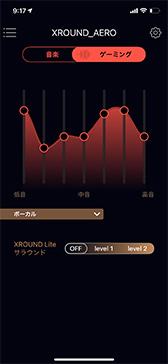 独自のバーチャルサラウンドサウンド機能であるXROUND Liteは,オンにすることで立体的な音響空間を構築するもので,「Level1」と「Level2」,「OFF」の3段階がある。