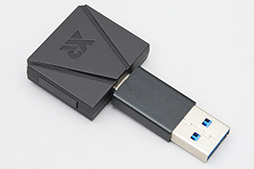 XT-01は,汎用のBluetoothオーディオトランスミッターであり,PCやPS5/PS4,Switchなど,本製品をUSBオーディオデバイスとして認識可能な機器で使用できる。実測サイズは28×32×7mmと小さく,ポケットや財布の中にもしまっておける程度だ。