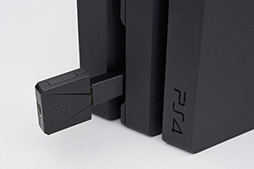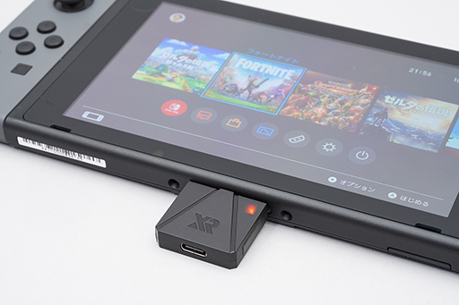 XT-01の製品ボックスには,USB Type-C to USB Type-A変換アダプタと4極3.5mmミニピン接続の「HD音声外付けマイク」が入っていた。なぜマイクがあるかというと,XT-01を使用するときは,AERO側のマイクが機能しなくなるためだ。そこで外付けマイクを用意して,PS4の純正ゲームパッド「DUALSHOCK 4」や,Switch本体に取り付けてボイスチャットに活用するというわけだ。