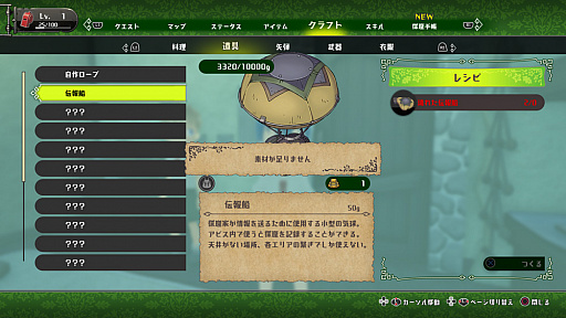 また,ゲームシステムとしては,クラフト要素の情報が届いている。アビスの探窟で必要になるさまざまな道具や食料,医薬品,衣服などのアイテムは,探索で入手した各種素材からクラフトできる。本作には,荷物の重量制限があるため,出発時の荷物は最小限にして,現地でクラフトして調達することも重要になるという。