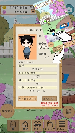 設置したアイテムで遊ぶ姿や、食べ物をあげたときのモーションはとっても愛らしいよ。