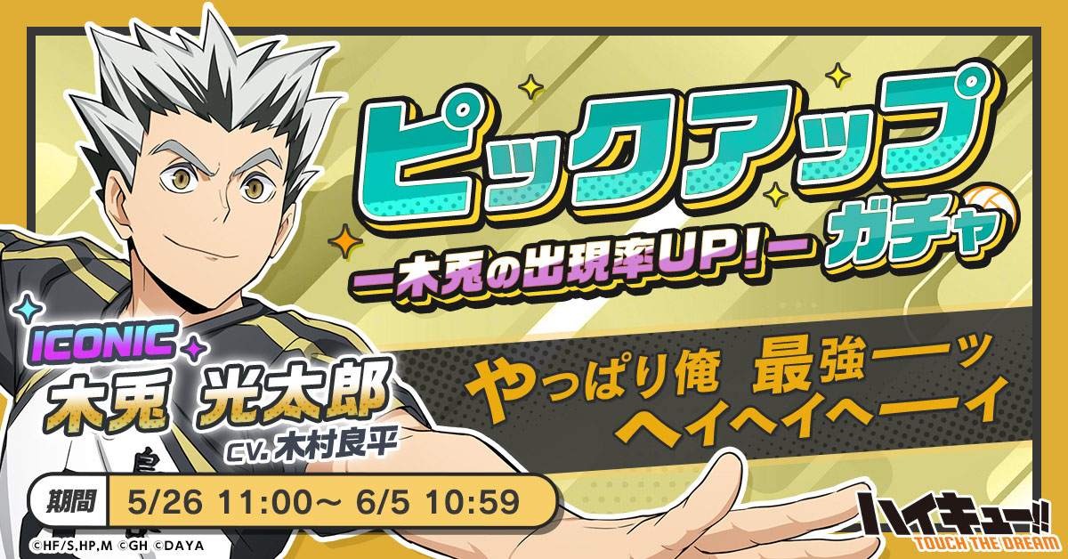 「ハイキュー!! TOUCH THE DREAM」,100万DLを達成。梟谷学園高校が追加され,木兎光太郎のピックアップガチャも実施中