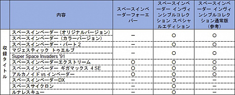 【「スペースインベーダー インヴィンシブルコレクション」シリーズ収録タイトル早見表】