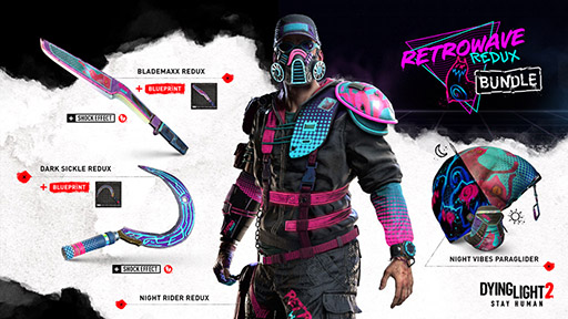 また、音楽ジャンル・シンセウェーブにインスパイアされた衣装・武器等のセット「レトロウェーブ・リダックスバンドル」を、ゲーム内ストアで本日(※2)より3月14日までの期間限定で無料配信いたします。