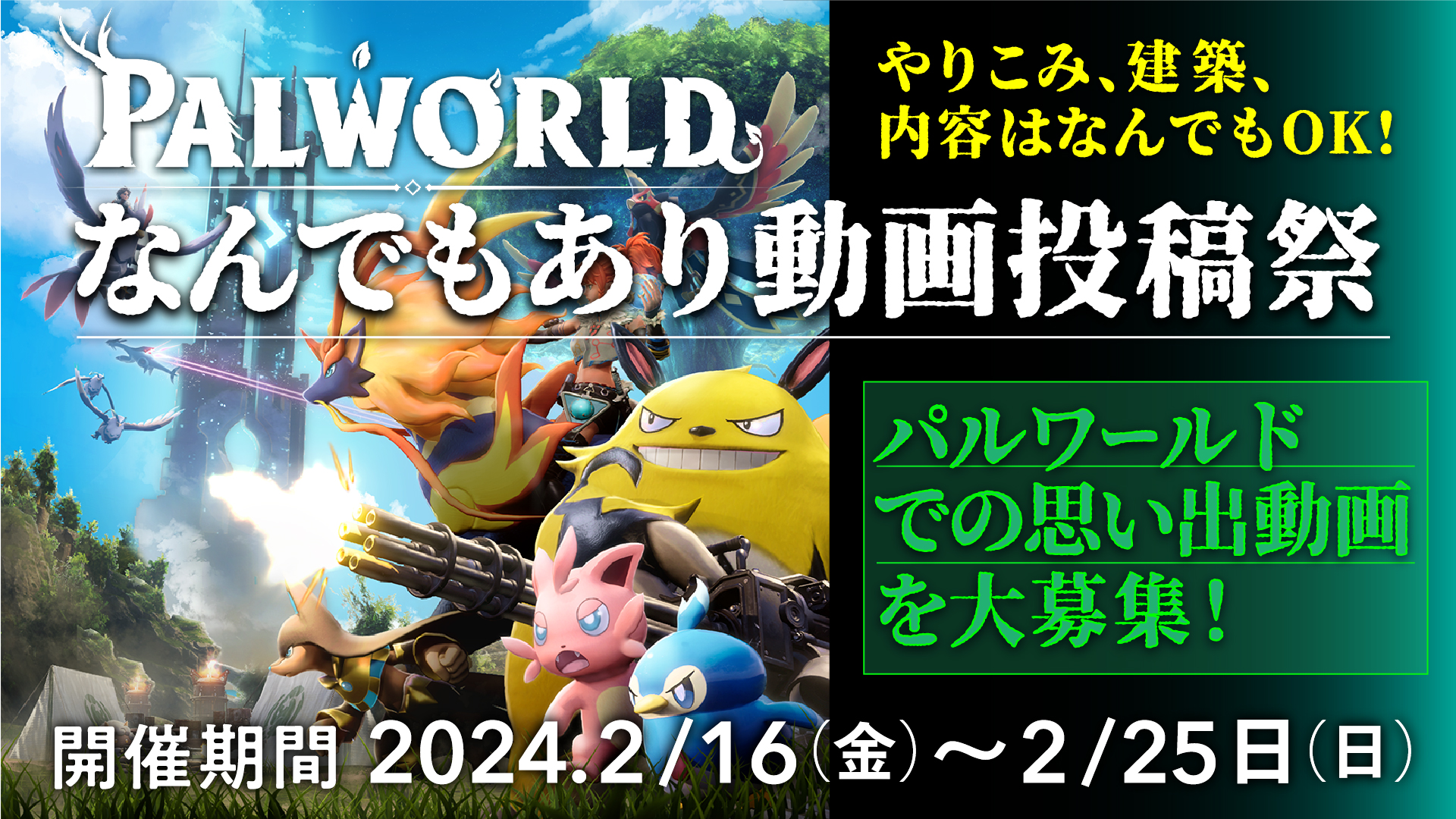 「パルワールドなんでもあり動画投稿祭」がニコニコ動画で2月16日から開催決定。「建築部門」「やりこみ部門」「なんでも部門」を用意