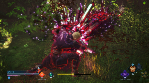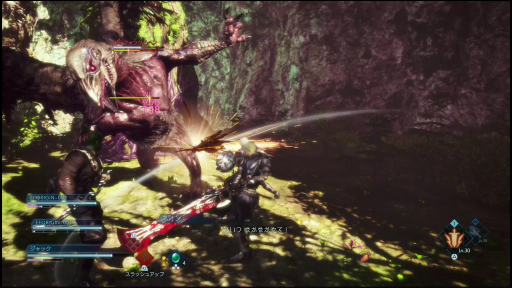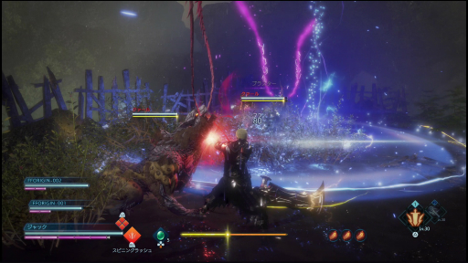 6月に期間限定で配信された体験版(関連記事)と同様,敵のハードな攻撃に対して2つのジョブを瞬時に切り替えて戦う戦術や,敵のブレイクゲージを削って爽快かつ残虐なフィニッシュを決める「ソウルバースト」,敵の攻撃をタイミングよく受け止めることでブレイクゲージを削り,さらに特定の技を吸収してインスタントアビリティとして使う「ソウルシールド」など,本作ならではのアクションは健在だ。今回は,前回の体験版配信終了後に寄せられたアンケートのフィードバックが反映され,アクションやグラフィックスなどが調整・強化されているそうだ。