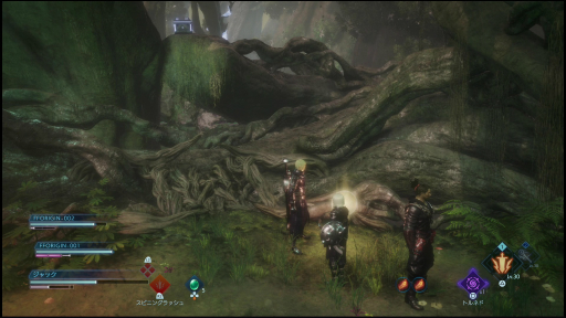 詠唱中に瞬時に魔法の種類を選べるよく考えられた操作方法なのだが,戦いながら狙った魔法を確実に繰り出すには慣れがいる。攻撃魔法の場合は,敵をロックオンしている状態だと対象に向かって魔法を打つが,ロックオンを解除している状態だと,発動位置を自由に決められる。[R2]ボタンを放すまでに[Rスティック]での発動位置も決めなくてはならず,操作がさらにテクニカルになるが,使いこなせればより効果的な位置に魔法を繰り出すことが可能になる。