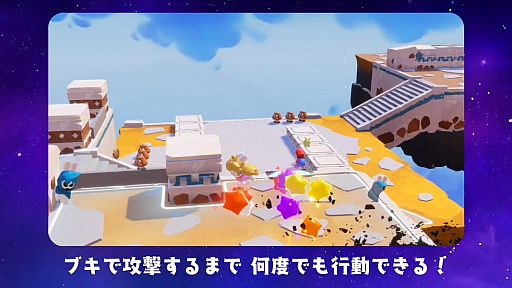 「マリオ+ラビッツ キングダムバトル」に続き,マリオとラビットがタッグを組んだ本作。全9キャラクターの中から3人1組でチームを作り,武器を手にして仲間と連携しながら戦う,“戦略シミュレーションアドベンチャー”だ。