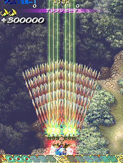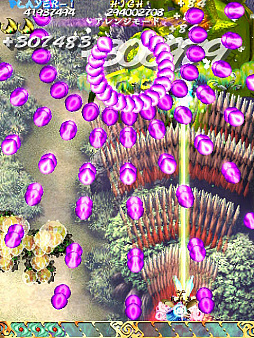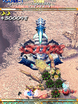 アレンジモードでは最初からフルパワー状態のため,1面ボスのギガスゾォムは,第1形態は2つ目の攻撃パターン,第2形態は1つ目の攻撃パターンで撃破できる。ボムを節約するためにも,しっかりショットを打ち込んで難しい弾避けを要求される前に撃破したい。