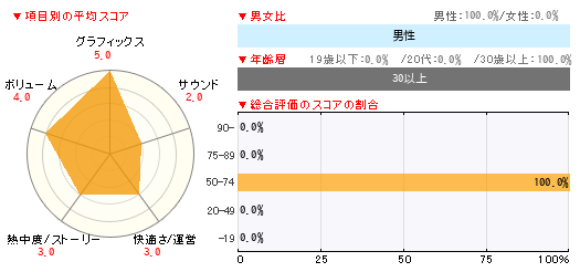 グラフィックス サウンド 快適さ/運営 熱中度/ストーリー ボリューム 5 2 3 3 4