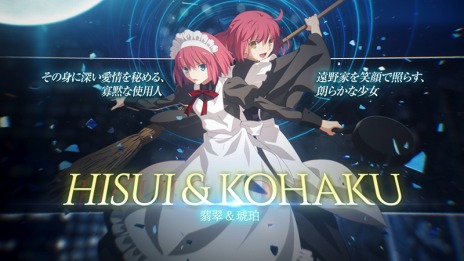 「翡翠&琥珀」のキャラクター紹介動画を公開いたしました。バトル中の動きや、技の演出、ゲーム中のボイスなど初公開情報が盛りだくさんの内容です! 動画は、本作の公式サイトの「CHARACTER」ページまたは、YouTube の「【公式】TYPEMOON GAMES」チャンネルからご覧いただけます。