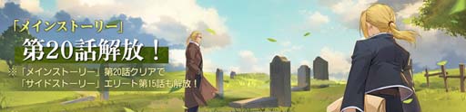 本日3月23日(木)より、メインストーリー第20話「墓前の父」を公開いたしました。リゼンブールへと戻ったエドワードは、母の墓前で父ホーエンハイムと再会する――。