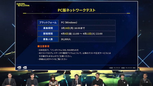 ●「GUNDAM EVOLUTION」ネットワークテスト公式配信 出演者一覧(敬称略)