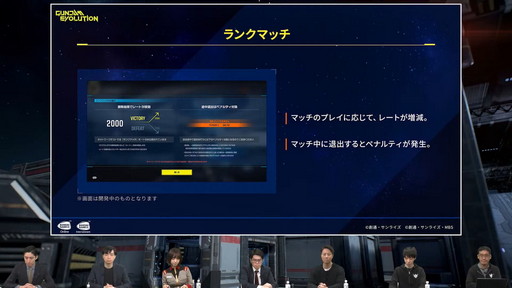 勝敗でレートが増減,レートの近いプレイヤー同士のマッチングが行われる。クローズドβテストで問題となった途中退室にはペナルティが科せられるという。レートを基にしたランキングイベントも行われるとのこと。