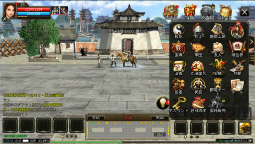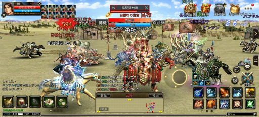 国戦は定期的にサーバーの1chで行われ,実施時間中は敵勢力を攻撃したり,城や都市を占領したりすると「俸禄」(アイテム福袋)や「勲功」を獲得でき,活躍次第で官職の昇進にもつながる。