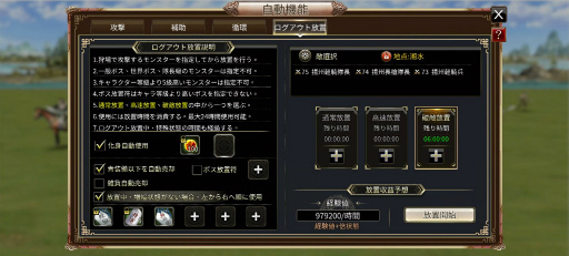 さらに,ゲームをログアウト中もキャラクター経験値などがたまっていく「放置機能」により,1日ずっと手つかずでも機能に即した恩恵を受けられるようになった。計画さえ立てておけば,ほぼプレイしていないのに高レベルの仲間入り,なんてことも夢ではないかもしれない。