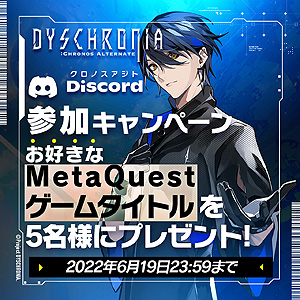 Discord内ファンコミュニティ「クロノスアジト」では、2022年6月19日(日)23:59までに参加し、所定の投稿にスタンプでリアクションした方の中から抽選で5名様にお好きなMeta Questのゲームをプレゼントするキャンペーンを実施いたします。