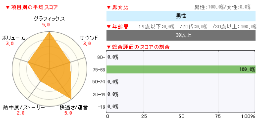 グラフィックス サウンド 快適さ/運営 熱中度/ストーリー ボリューム 5 3 5 2 3
