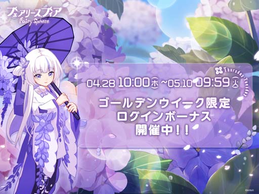 株式会社bilibiliは2022年4月28日(木)より、微笑科技開発によるスマートフォン向け箱庭系ゲーム『フェアリースフィア』(対応機種:iOS、Android)にて復刻イベント「花咲く季節」とGWキャンペーンが開催したことをお知らせいたします。