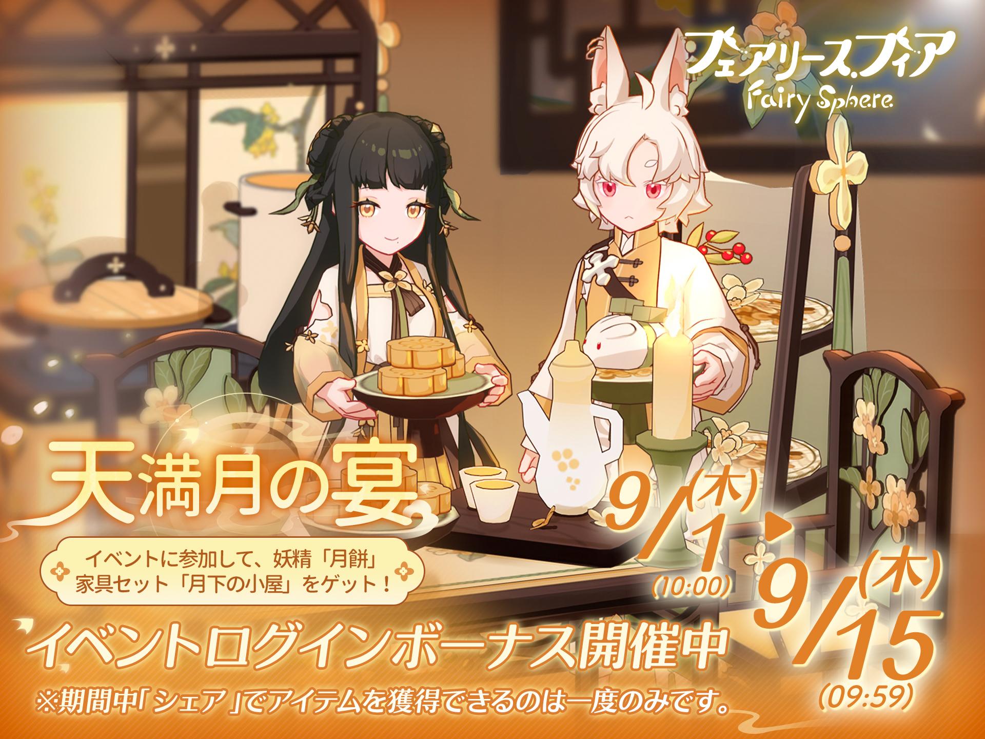「フェアリースフィア」で期間限定イベント“天満月の宴”が開始に。イベント限定妖精“月餅”が登場